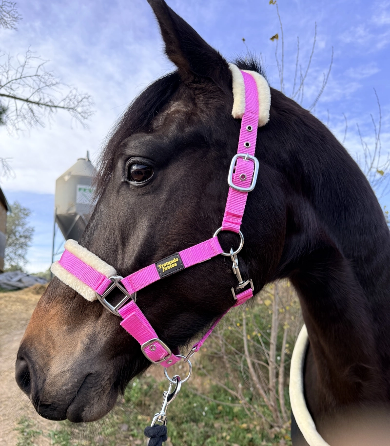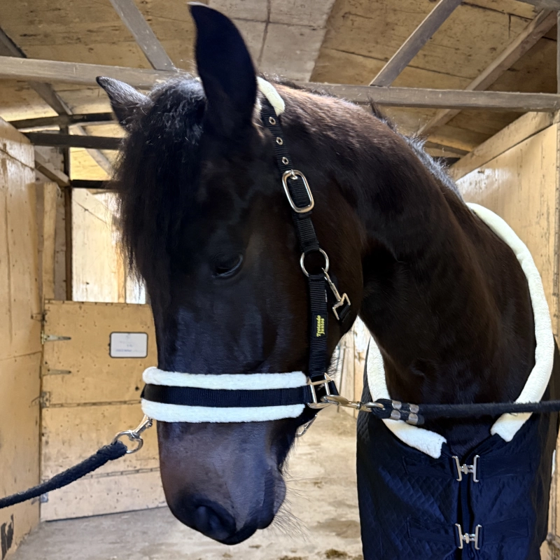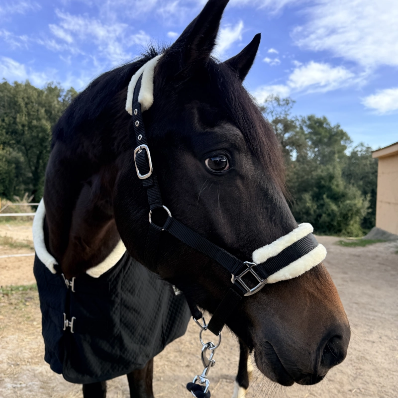 Pero la resistencia no está reñida con el confort. Las zonas más sensibles (la muserola y la testera) están forradas con un suave y denso borreguillo sintético que protege la piel del caballo, evitando rozaduras y marcas por presión.