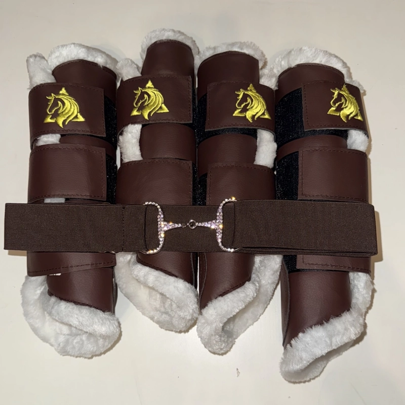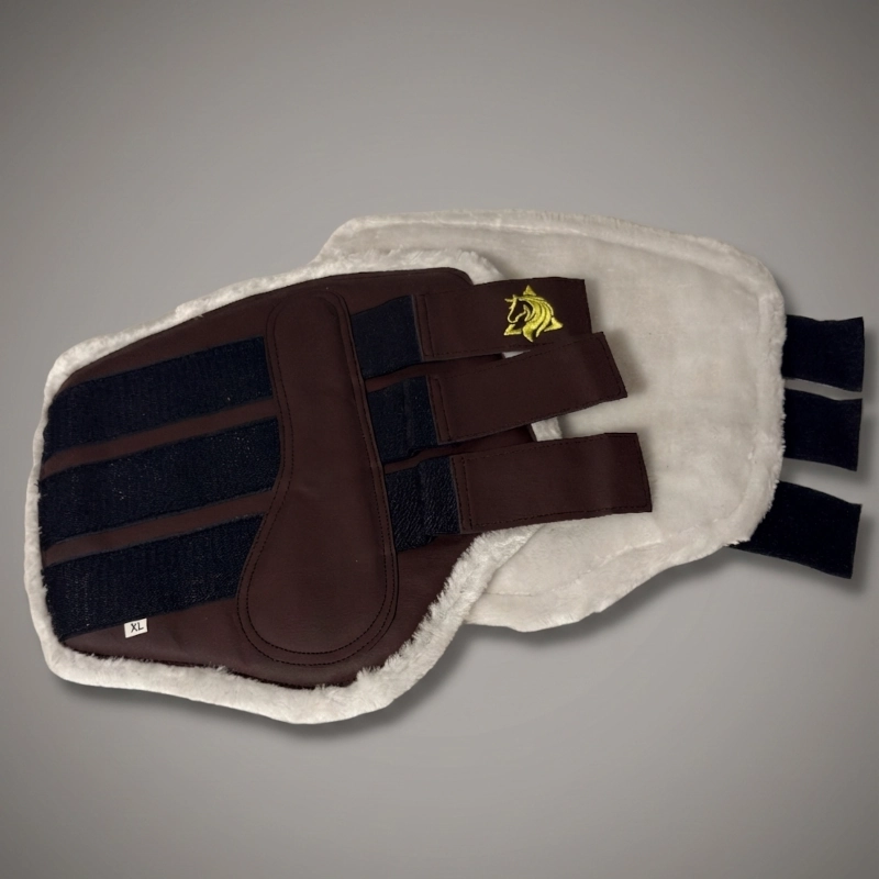 Color Premium: Un tono marrón chocolate profundo que combina perfectamente con cualquier capa de caballo (especialmente castaños y tordos) y disimula la suciedad de la pista.