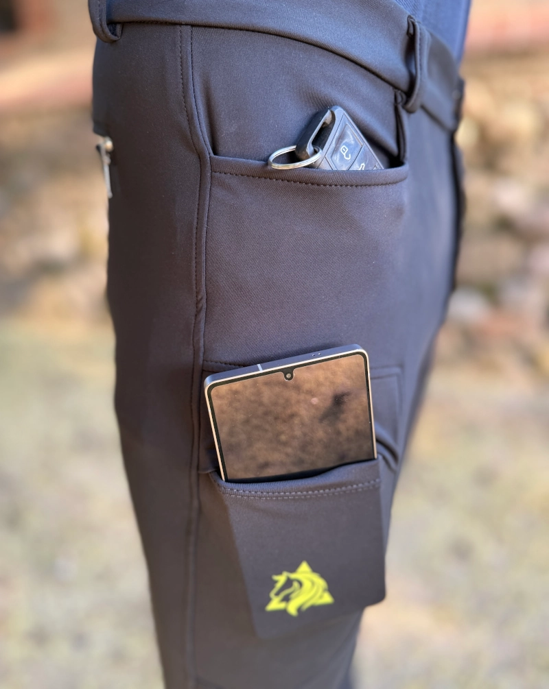 - Bolsillos Prácticos: Un bolsillo específico en la pierna derecha para llevar el móvil de forma segura y dos bolsillos delanteros profundos para todo lo que necesites.