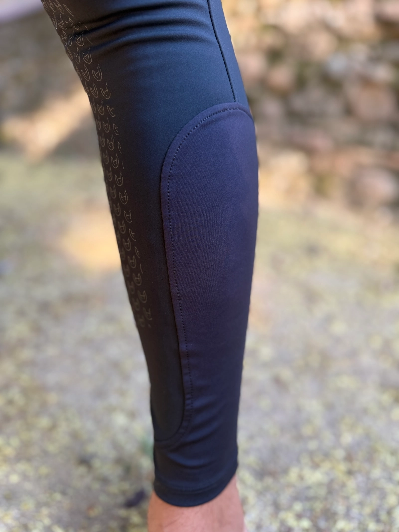 Confeccionados con un tejido de alto rendimiento de 80% poliéster y 20% spandex (320 g), estos pantalones ofrecen una elasticidad y resistencia excepcionales. La cintura elástica, reforzada con silicona, garantiza un ajuste perfecto y seguro, evitando cualquier deslizamiento durante la monta.